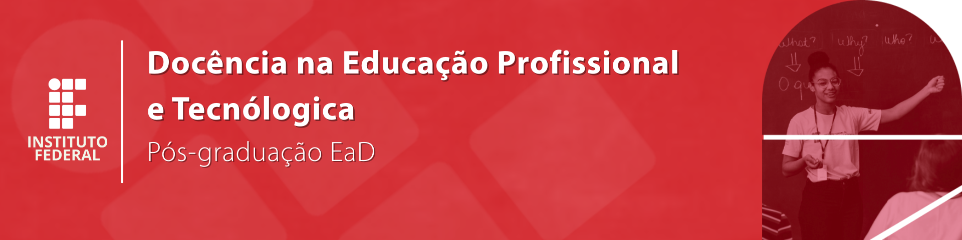 Reitoria / Universidade Aberta do Brasil / Pós-graduação / Docência na Educação Profissional e Tecnológica (EPT) (2024) / Docência na EPT - Turma 2024.2 / Módulo 2 - Núcleo Específico: Fase 1 e TCCII